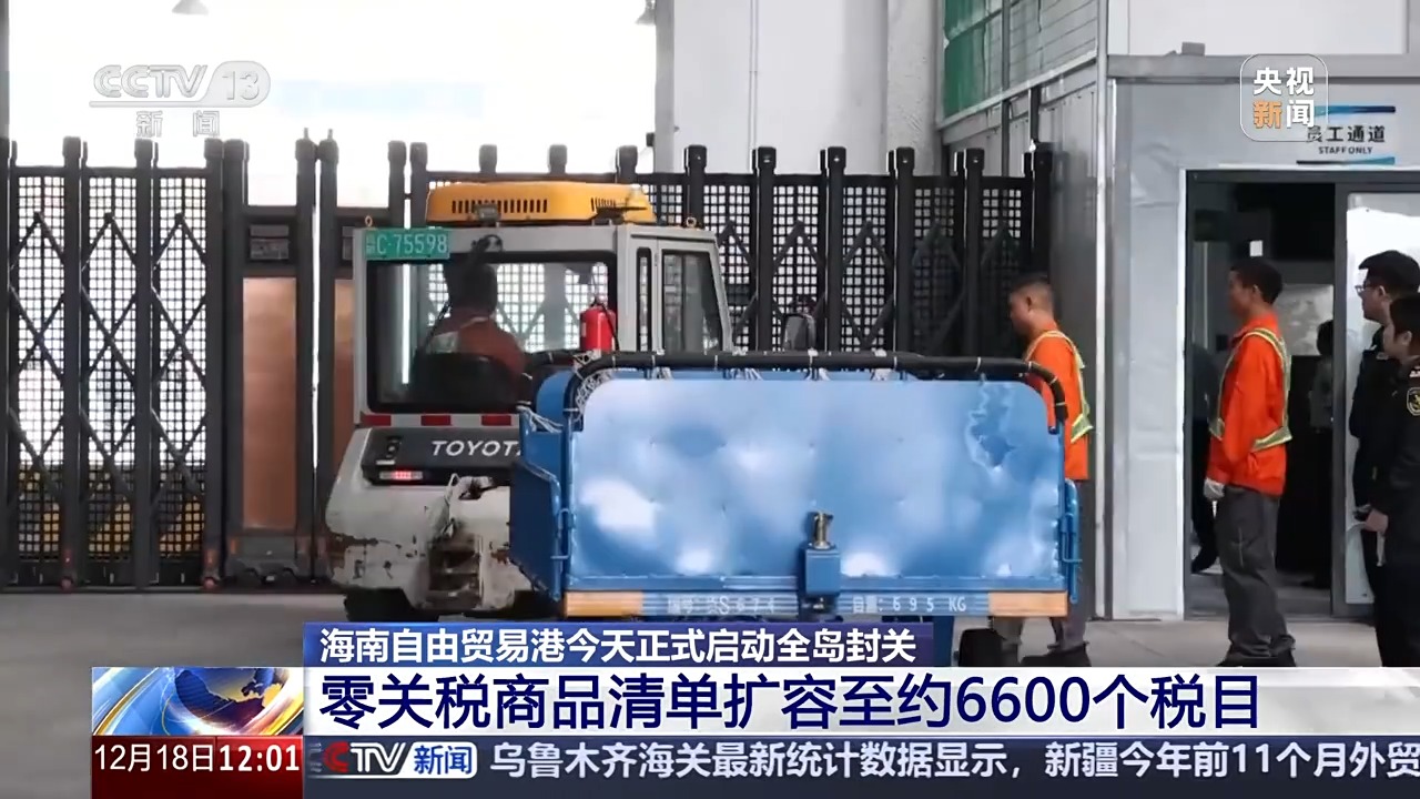 总台央视记者 李厦:这里是三亚凤凰机场国际货站,今天上午,第一批“零关税”商品在这里完成清关出库。像这套价值100万元的进口科研设备,封关前需要缴纳5%的进口关税和13%的进口增值税,而封关后该类设备被纳入“零关税”政策范围,为企业节省采购成本超18万元。